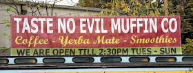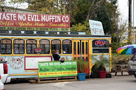 This morning we ventured to Taste No Evil Muffin Comp. Unfortunately, no one was there to open the trailer's window at 0900 when they were due to start serving. So we walked to our new found and now favorite Austin dive next door...Taco X-Press.
