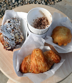 This Sunday morning led us to the newly opened La Boite Cafe...The concept: a green, environmentally sensitive cafe, focused on delivering excellence in coffee and a handful of artisan foods. Rather than staking claim to a trendy streamline trailer, they opted to a "greener" design and created the cafe out of a used shipping container.