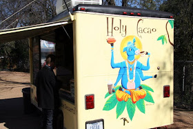 We finally tired the cake balls I have heard about forever at Holy Cacao. Cake crumbles mixed with icing, rolled into a ball, dipped in chocolate...Holy Cacao they were good! Our top favorite Brass Balls (Peanut butter cake mixed with chunky peanut butter, then dipped in chocolate and topped with crushed peanuts.)
