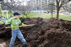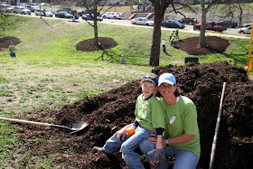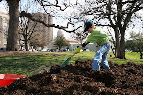 Big and I had a date this morning for "Its my park day!" It’s My Park! Day is an annual community service day focused on improvements to Austin’s park system. We were at a park downtown where Mobile Loaves & Fishes distributes food to the homeless. After scooping and spreading mulch for 3 hours, we were beat. The live music and great snack kept us going but the greatest reward was seeing how beautiful the park was once we were done. And I was lucky enough to run into Jerry again, a homeless man I met while serving Christmas dinner downtown. He shook Big's hand and helped us load the wheelbarrow and tools into the truck. He has a killer smile (and story)!