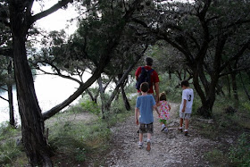 Then we headed up to the NW overlook of the bridge (see the cliff in pic #2). After a steep climb and finding the safest spot to park 3 kids, we enjoyed a picnic dinner while the sun began to set. Unfortunately, school still rules our life so we had to leave before the true majestic colors began...early bedtime.