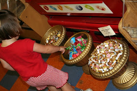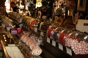 ...a kid (or 3) in a candy store! Downtown errands were bribed today with a surprise stop. Big Top Candy Shop was the treat for my 3 angels! They all walked in wide-eyed and on a sugar high just by looking. We walked out with bags of gummies, licorice, and of course...the dreaded 10 day lolly.