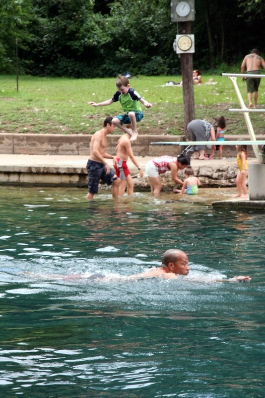 Known to heal Native American wounds back in the 1700's, the chilly 68 degree water of Barton Springs is refreshing on a hot summer day. Of course this summer day was overcast and cool, but we wanted to share the goose-bump experience with our niece/cousin.