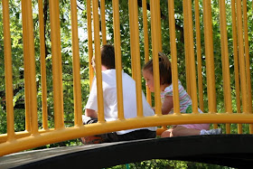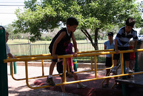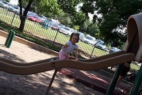 Zilker Park. A little of something for everyone here from swimming, canoe rental, Frisbee golf, to picnics, a train ride, or flying kites. We stayed on the playground today and finished with picnic. Not bad for an almost 100 degree day!