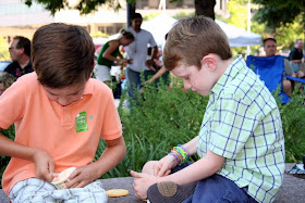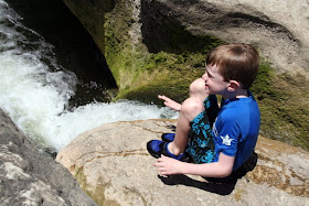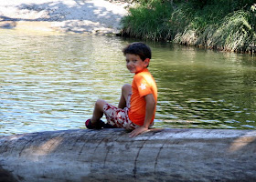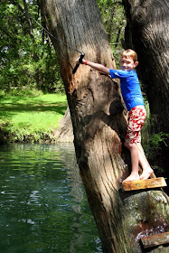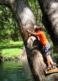 We headed out to share one of our favorite swimming holes with Daddy this morning. Onion Creek in McKinney Falls State Park lets the little guys jump off 'cliffs.' Not much more than 10 ft from the water, limestone rocks offer the perfect jumping platform. A picnic lunch and a small hike to the Smith Rock Shelter ended our day.