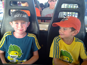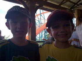 After a LONG weekend with Grandma, I picked up the kids treating them to some DFW fun. The boys and I spent 7 hours at Six Flags...closing the park down! Thanks to our thick soled tennis shoes and double insoles, Alex easily passed the 48" height requirement to ride some of the serious roller coasters. The Titan (can you believe it?), Shock Wave, and Flashback were some of our favorites. These 2 are definitely thrill seekers and I need to toughen my stomach up if I plan on hanging with them the next 10 years :)