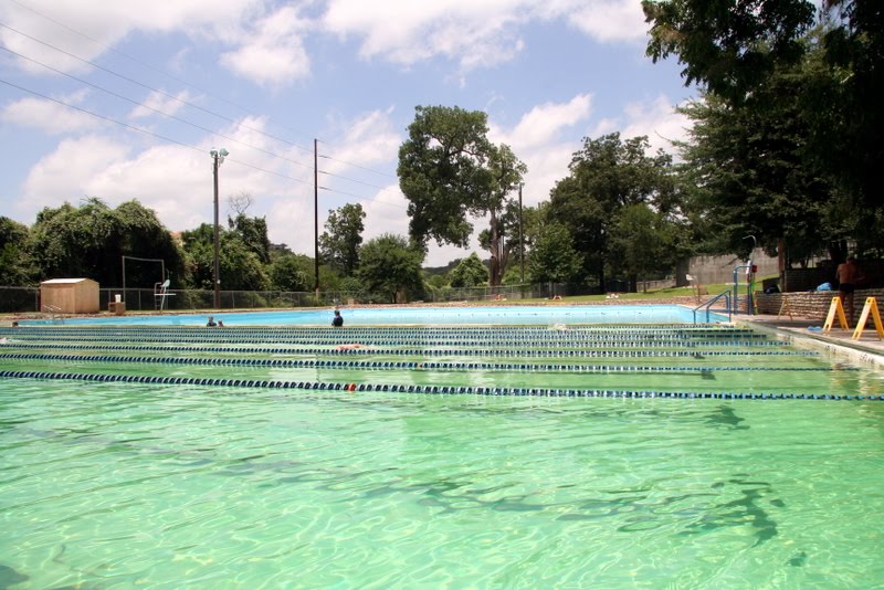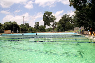 An overcast morning gave us a vacant swimming hole in downtown Austin at Deep Eddy. Known as the "oldest swimming hole in Texas," Deep Eddy was first built in 1915 after a large boulder formed an eddy off the Colorado River. Today it is a man-made swimming pool that is filled daily with fresh water from the Colorado River. Every night they drain the pool, scrub the walls algae free and refill each morning for the swimmers! Water temperature varies from 65-75 degress.