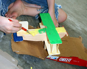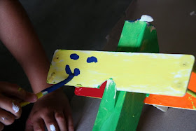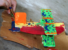 Hurricane Alex has put a damper on our swimming plans for the week, so we pulled out a some wooden airplane kits I bought weeks ago. Hammer & nails, a little glue, and paint...GORGEOUS! Nothing like getting some fresh air on a rainy day.