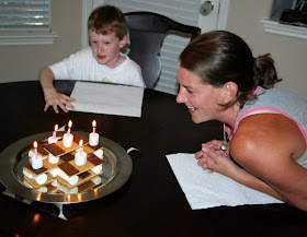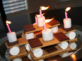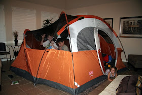 The best way to enjoy my new house (tent) and bed (sleeping bag) that I received as gifts for my birthday is to have a Camp out themed party! Of course the kids had just as much fun as I did. The s'more cake was a hit...I heard "this is like building Legos" and "its just like the farm" and "this is the BEST cake ever!"