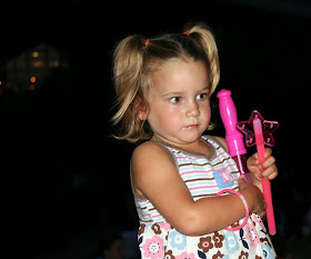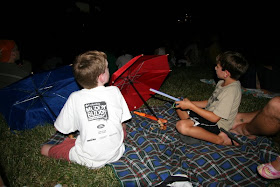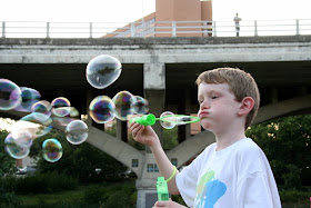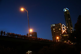 We still tried to witness the "black tornado" that you can sometimes see as they escape...not tonight! We arrived early to get a good seat on the lawn with bubbles, glow toys, and umbrellas (lots of bats mean lots of guano). We played, waited, played, waited, and finally around 9:10 you could barely see the little fliers casually pass a street lamp. Nothing to ooh and aah over but at least we tried.