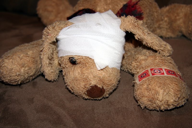 So last night during prayers when he broke out in a hysterical cry, I knew something was terribly wrong. His BBF lost an eye! By luck we found it and today while he was at school Nurse-In-Training Fran reattached the eye with some TLC.