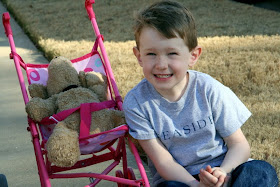 I know one day this stuffed dog will be lost in the back of his closet, but for now...it is keeping my oldest young :)