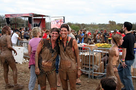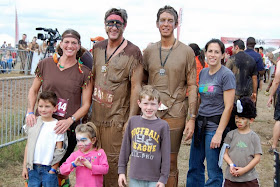 Yes, we are officially addicted to extremely muddy races! Today we experienced the Warrior Dash first hand. A 3.2 mile course with 11 obstacles including climbing over junk cars, balance beams, running through a river, over a huge hay stack, ropes courses, tire trots, and climbing walls only to finish by jumping over 2 fire pits and treading your way to the finish line through the mud pit. And then once again to the beer tent for your free beer. The kids got their fill of turkey legs, live music, and what to expect at really crazy frat parties in about 13 more years!