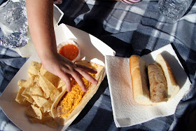 With Daddy and Alex away on a camping trip, I took the 2 others downtown to check out the Gypsy Picnic... A gathering of Austin's best trailer food nomads for a day of tasty treats, tunes & more. You know with 30+ trailers on a grassy field on a beautiful day, we were happy. Before we knew it, crowds took over the area and the food and festivities were not worth staying around for. We did get a chance to sample 3 new trailers and hang with our cousins for a bit!